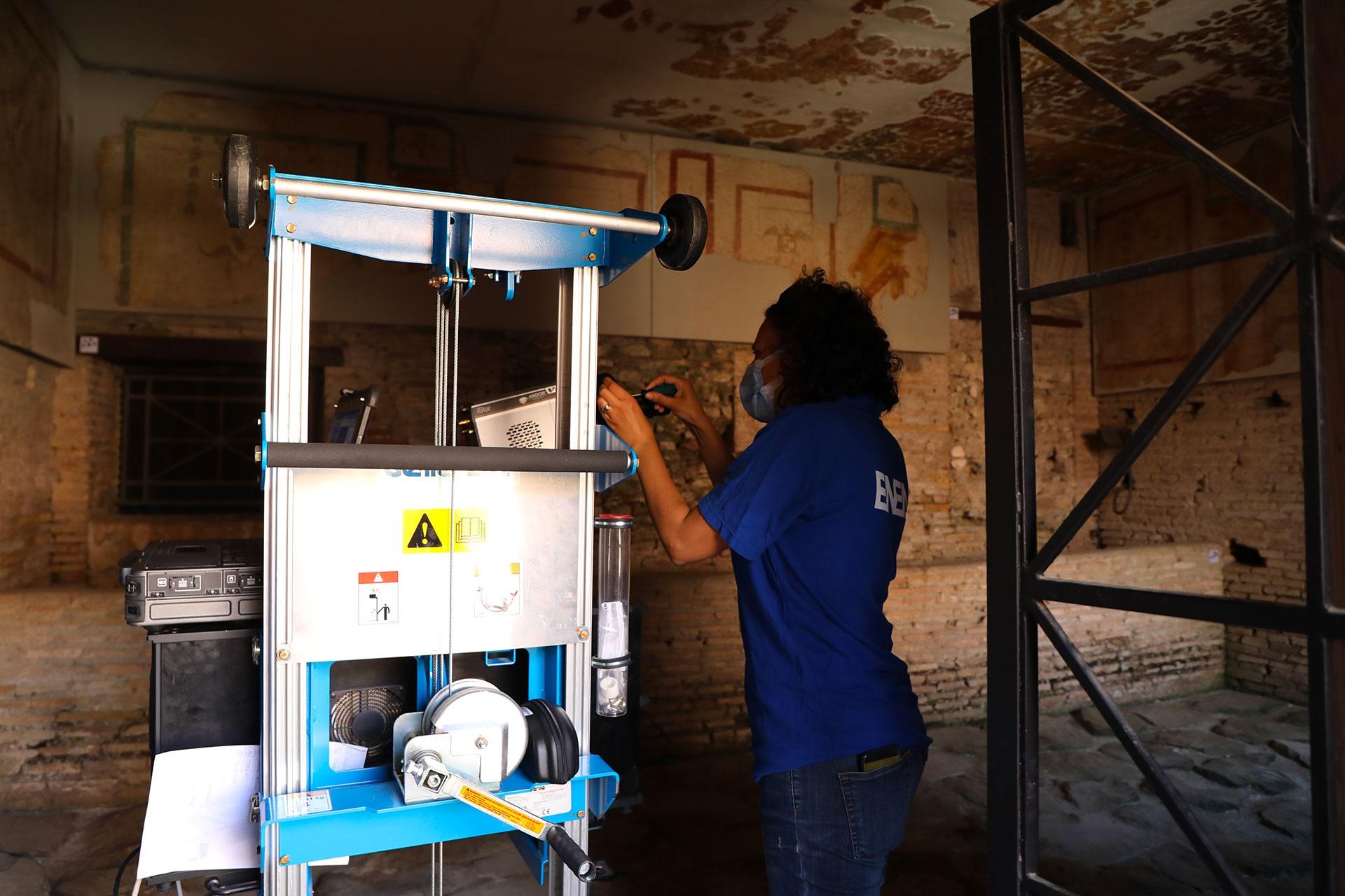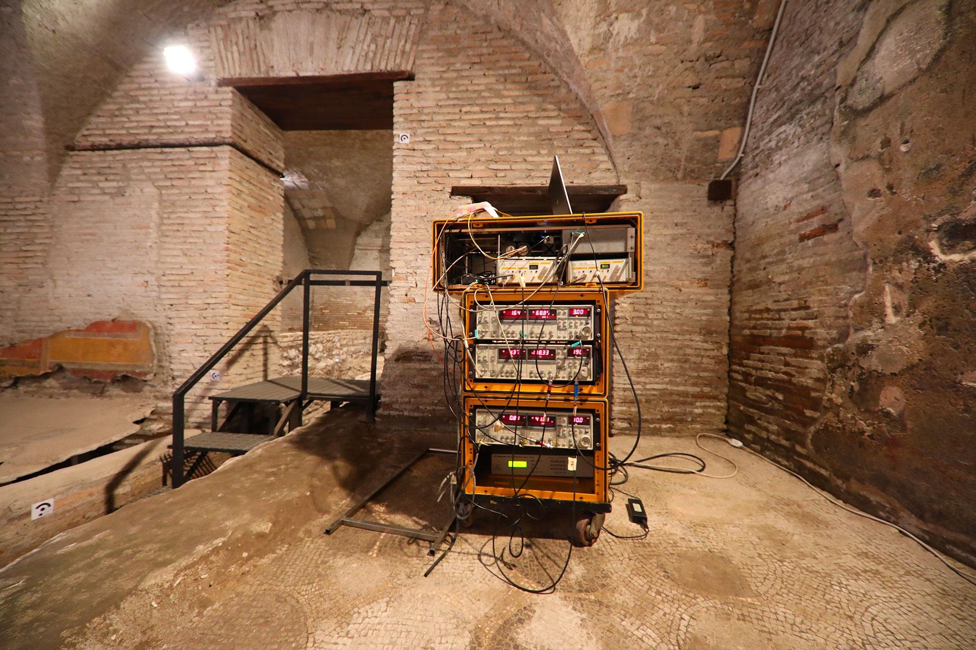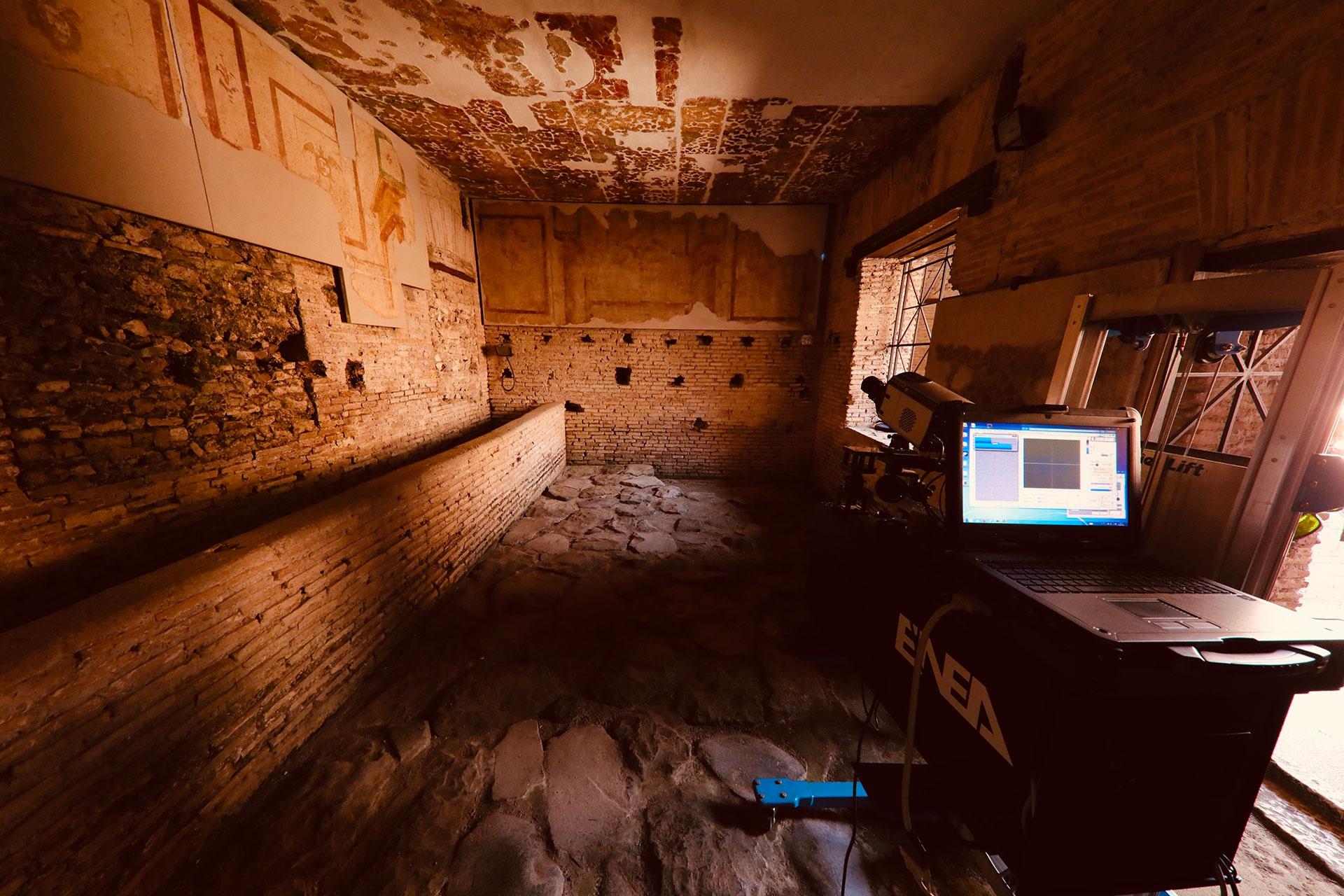 Il sistema LIF Forlab durante la campagna di misure VADUS presso il Parco Archeologico di Ostia Antica. Anno 2021.