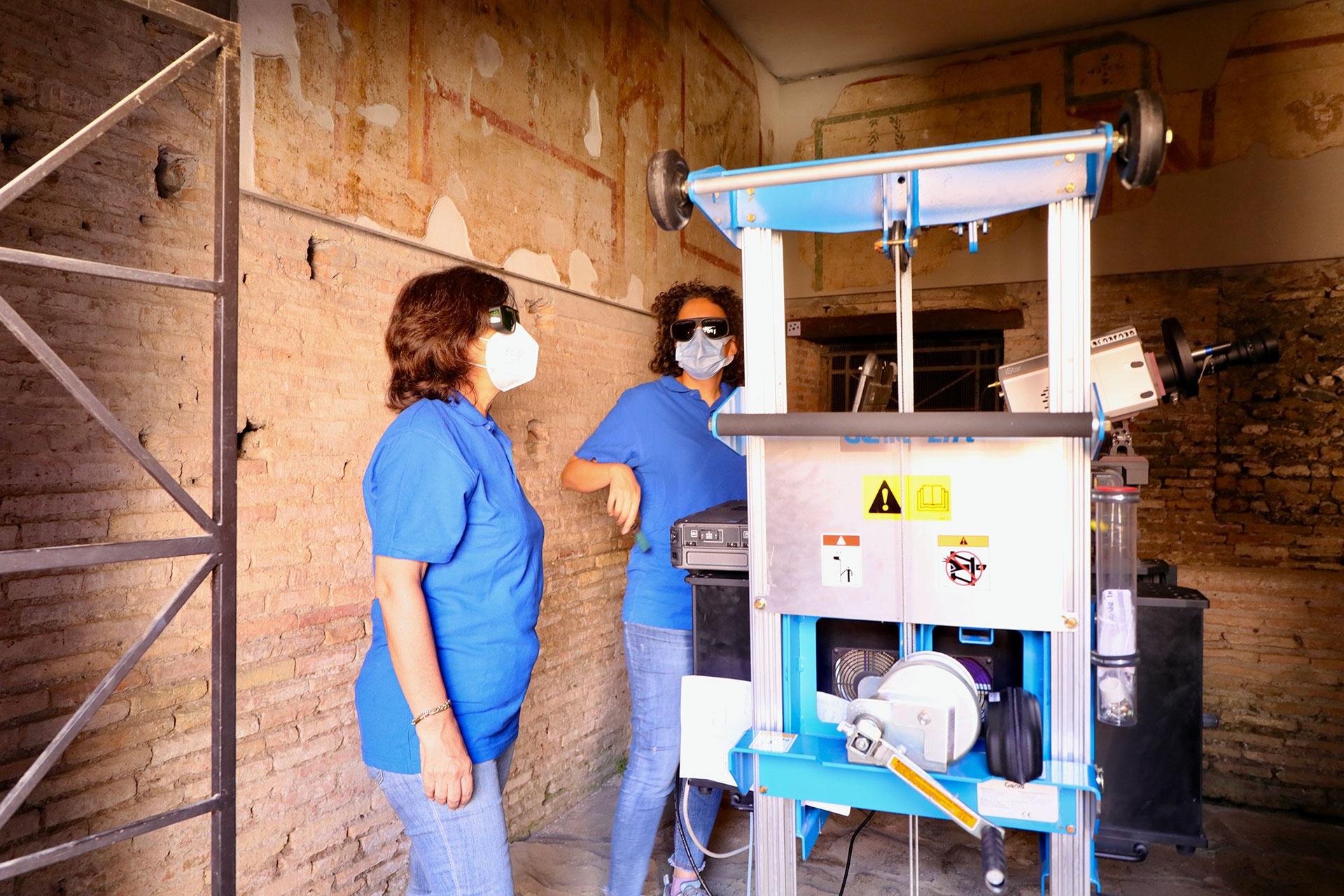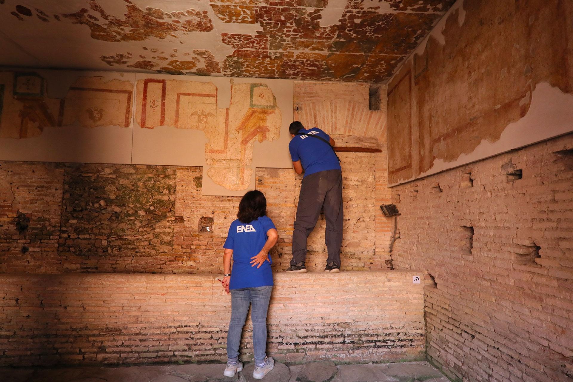 L’ENEA svolge, all’interno del progetto, differenti ruoli. Il primo è quello di coordinatore. Il secondo, grazie alle competenze sviluppate nel Laboratorio di Micro e Nanostrutture per la Fotonica (MNF), è legato all’ideazione e produzione di un materiale protettivo e consolidante nanostrutturato innovativo, mai testato prima. Inoltre, ENEA si occuperà sia della diagnostica che del monitoraggio: i prototipi LIF del Laboratorio DIM saranno impiegati per valutare stato di salute del sito ed effetti e durabilità dei trattamenti fatti, “fotografando” le condizioni iniziali del bene ed il suo stato ad intervalli regolari dopo le applicazioni.